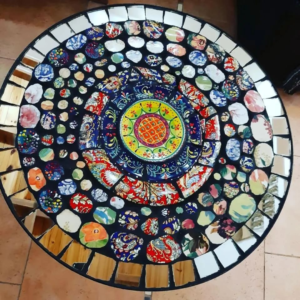 Trabajo con mosaico, smalti y mármol realizo cuadros con esos materiales.